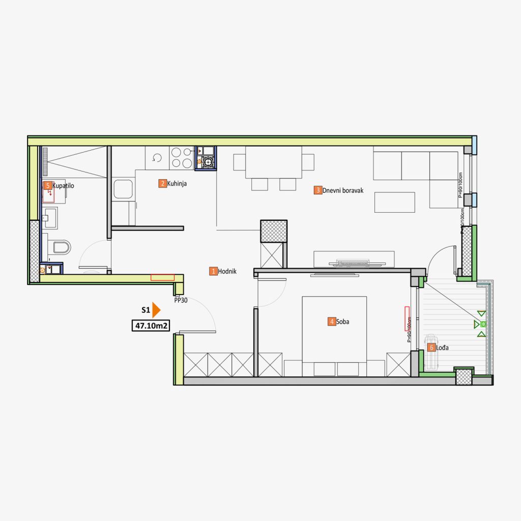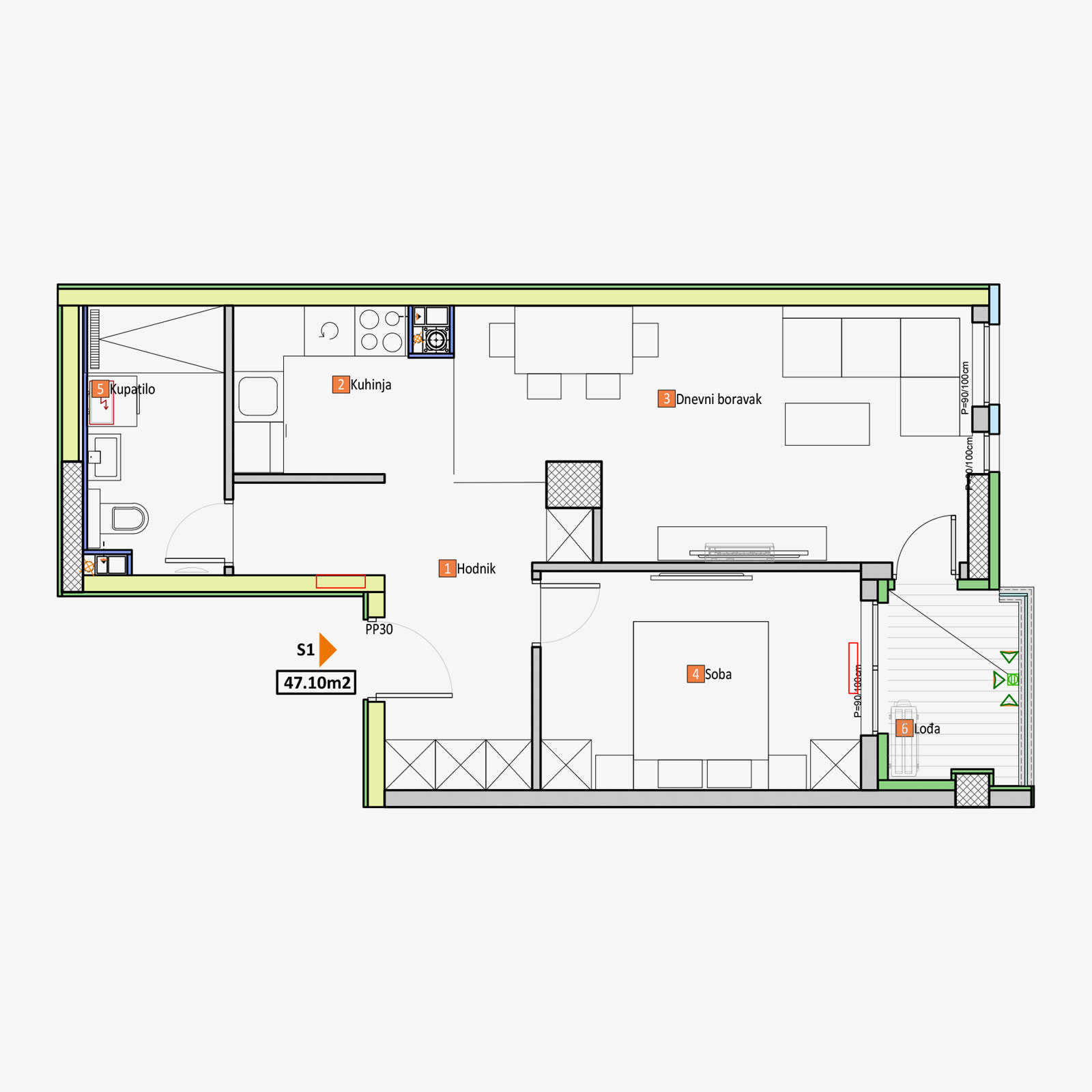 | S1-1 – ukupno (-3%): | 47.10 m² | ||