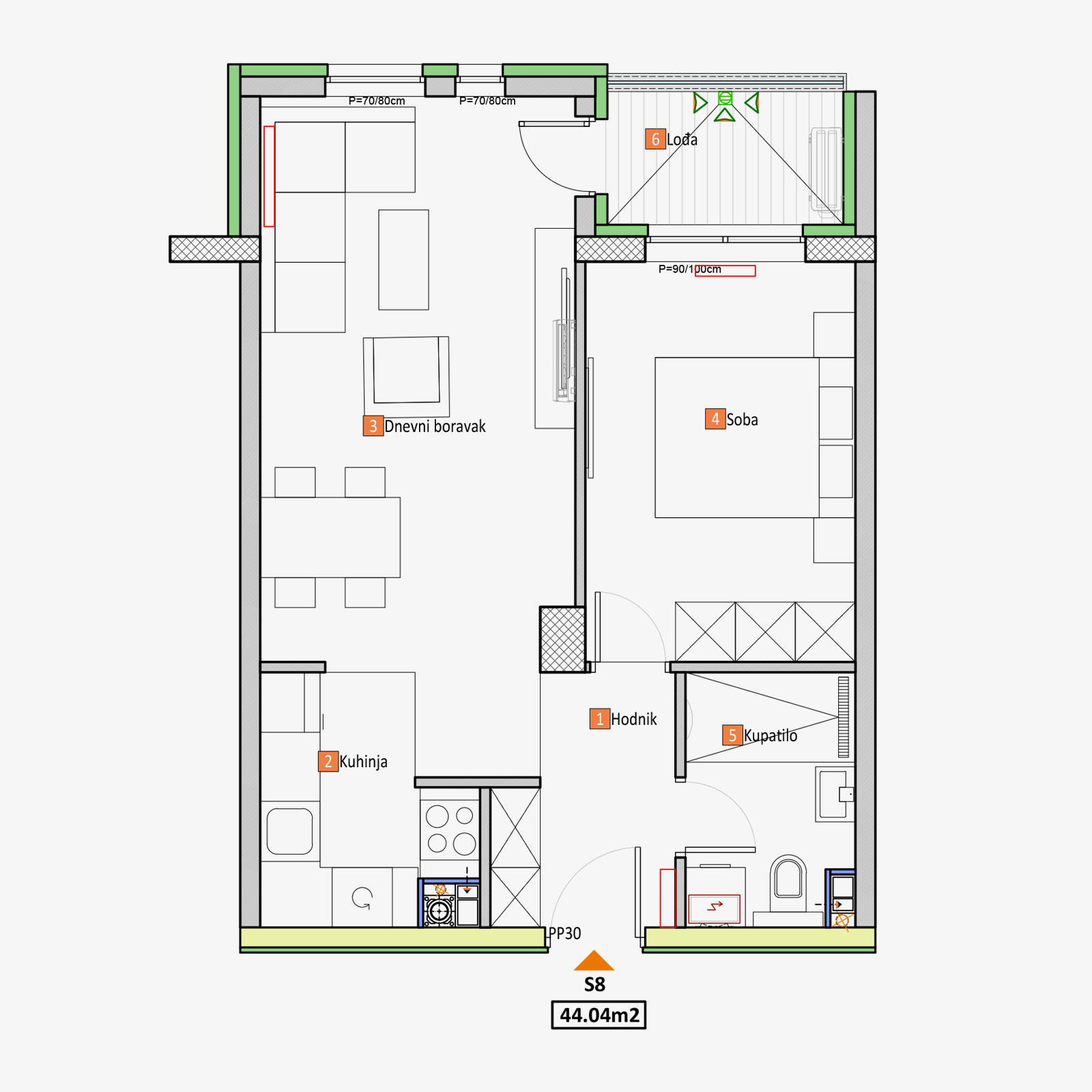 6 Lođa 2.42 m² protuklizna gran.ker.
